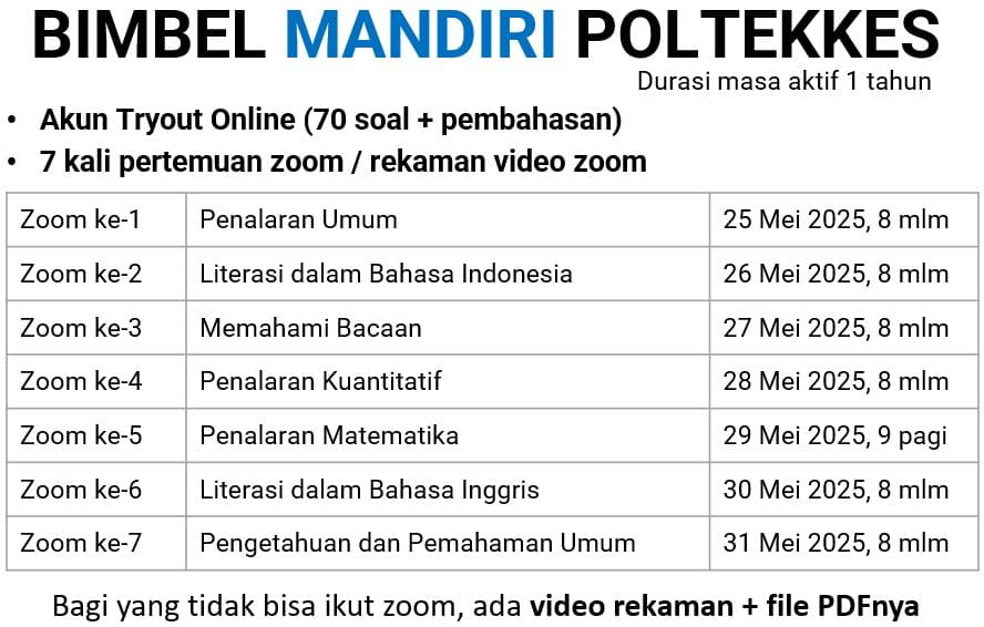 Video Belajar Materi (Rekaman Zoom) Poltekkes 2025 [1 tahun] Video Belajar Materi (Rekaman Zoom) Poltekkes 2025 [1 tahun] Read More »